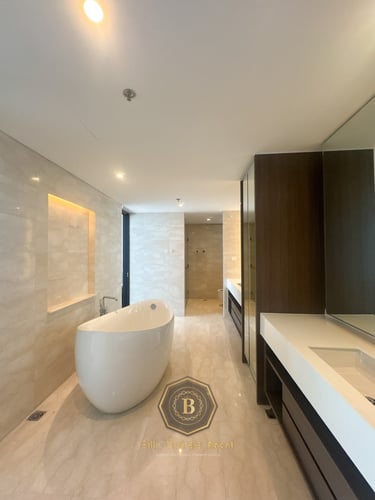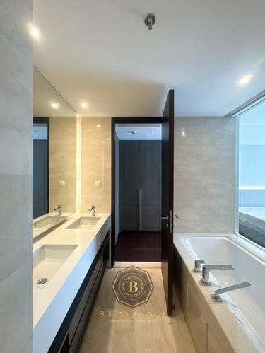 Apartemen 3 Kamar dengan luas 168 sqm dengan tata letak yang sangat baik, Kamar Tidur Utama yang Sangat Luas, apartemen ini memiliki 3 Kamar Mandi yang Sangat Mewah, Bak Mandi yang Sangat Indah dari Kohler dan lengkap dengan furniture dan interior desain VIVERE.