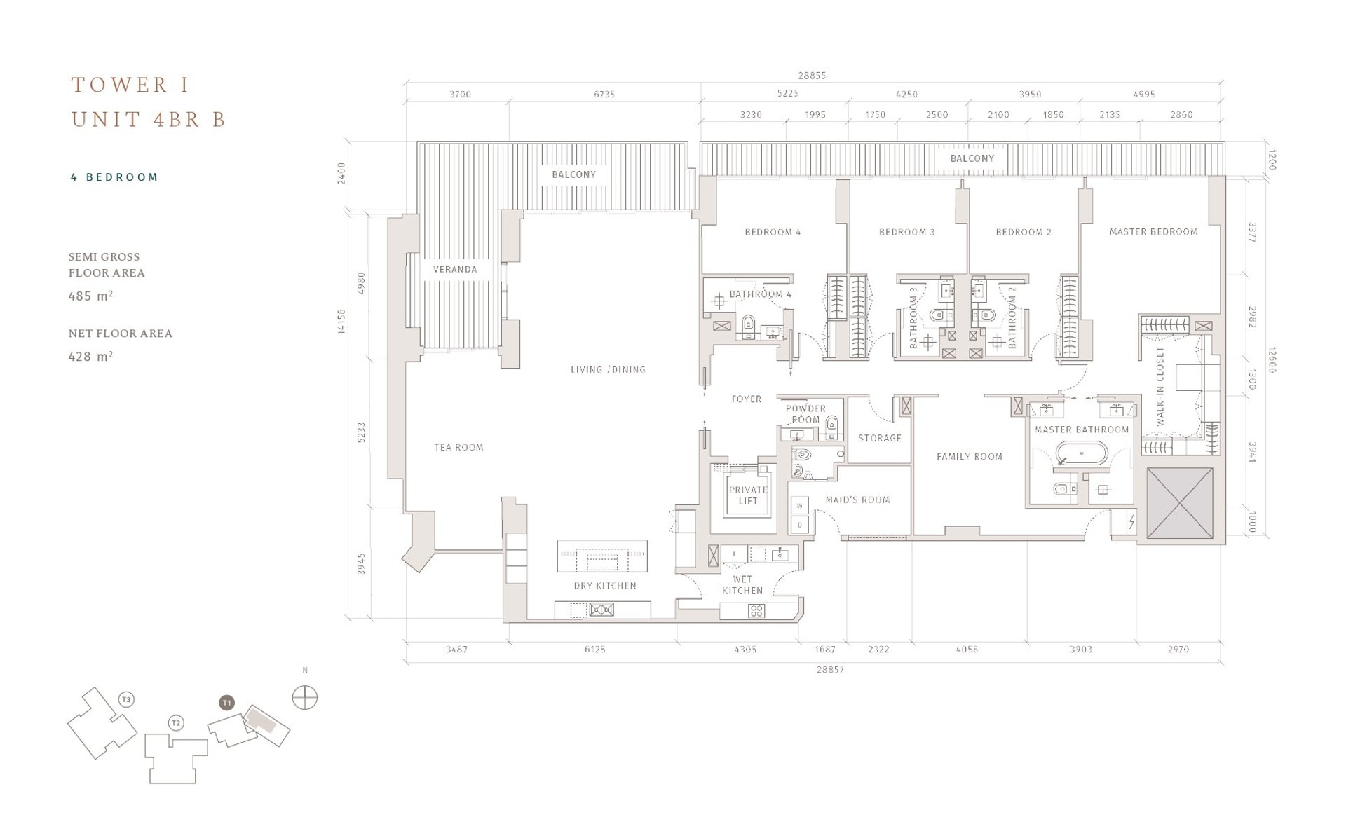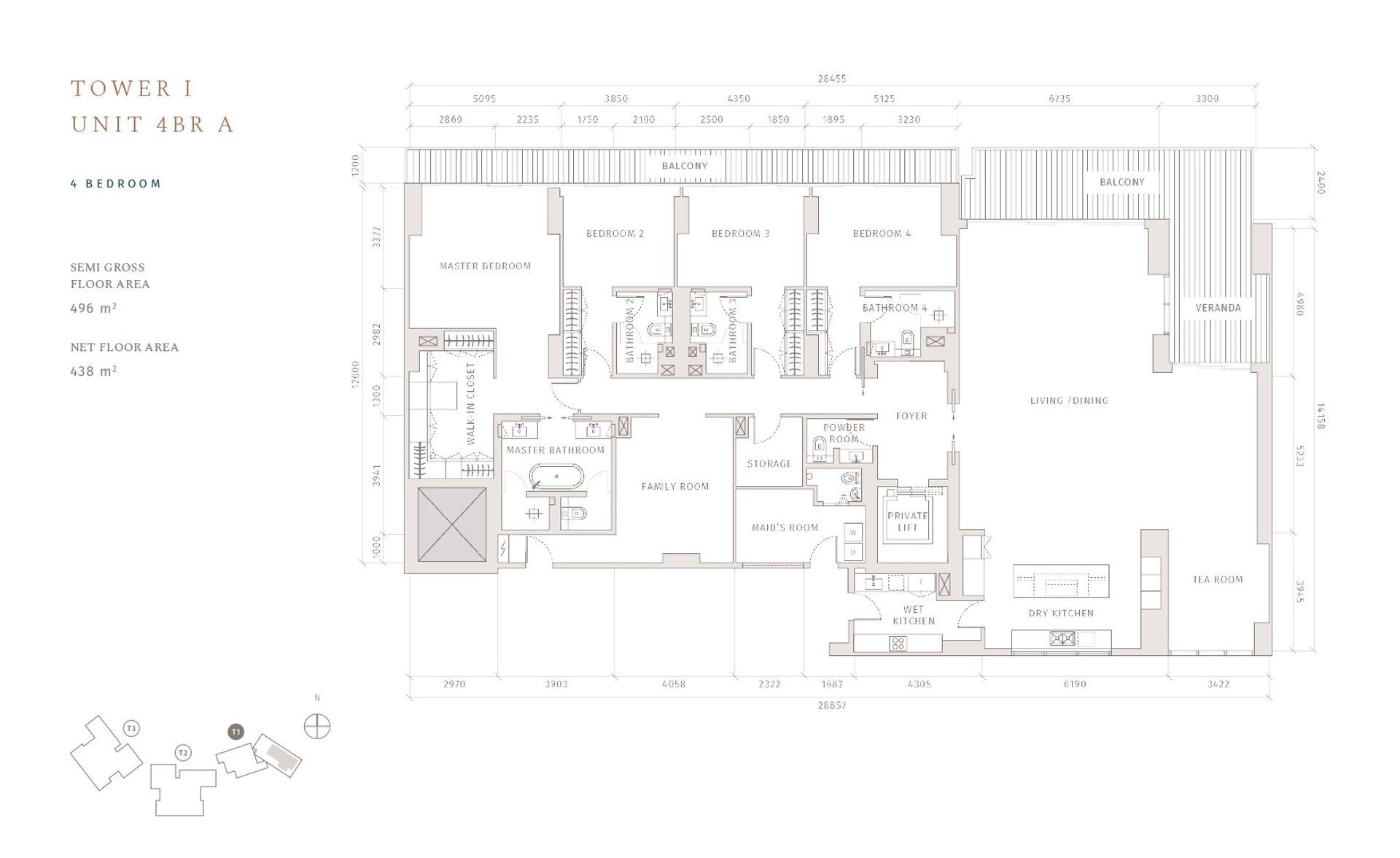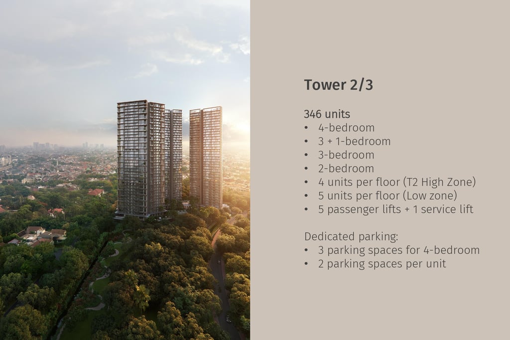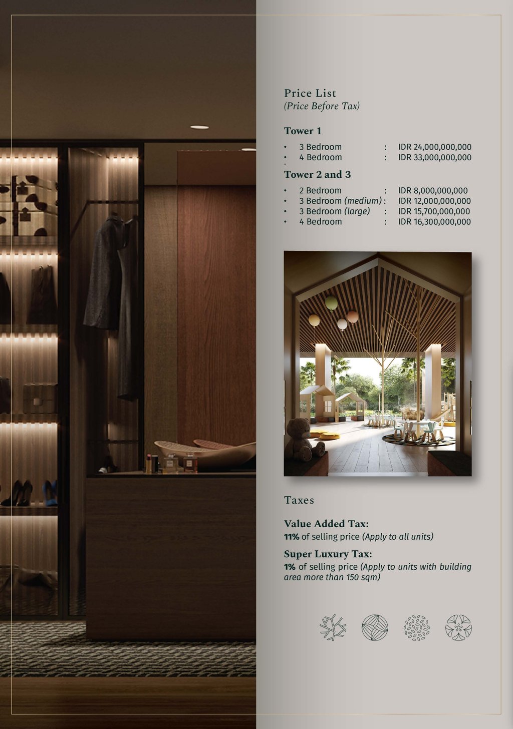 Tersedia beberapa tipe, seperti 3 kamar tidur, 4 kamar tidur, hingga penthouse.