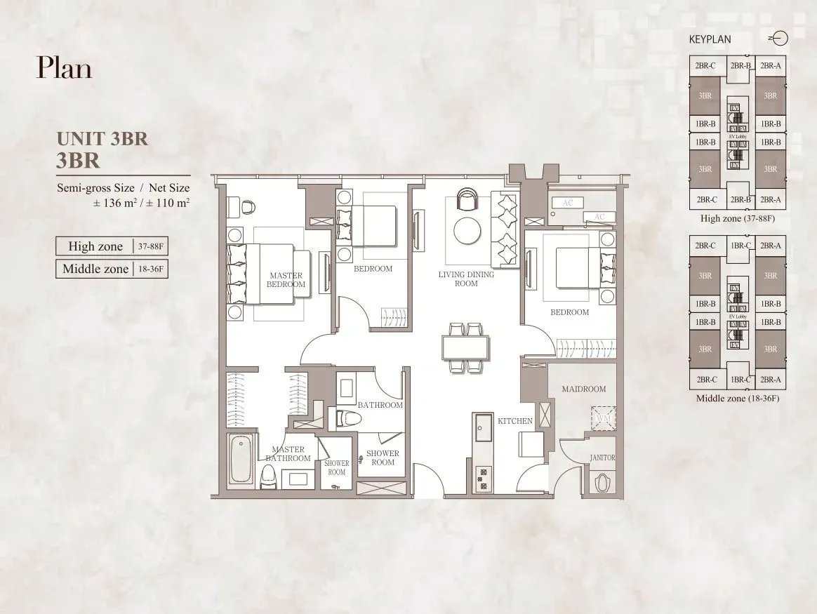 Tipe 3 Bedroom di Branz Mega Kuningan adalah representasi sempurna dari kemewahan Jepang yang berpadu dengan gaya hidup urban Jakarta. Dengan luas unit mulai dari 120 m² hingga 150 m², tipe ini dirancang khusus bagi keluarga modern yang mengutamakan kenyamanan, privasi, dan gaya hidup premium.