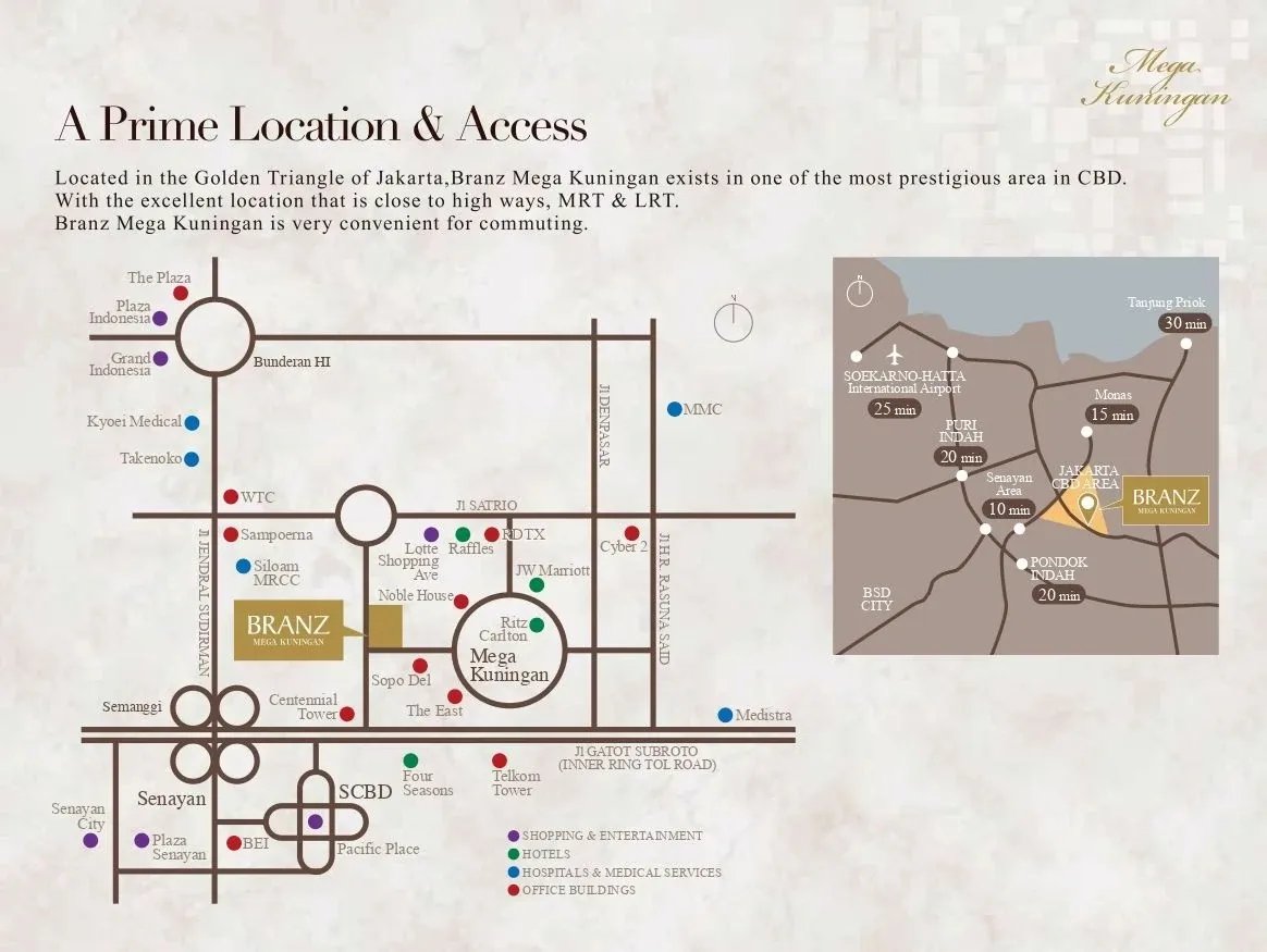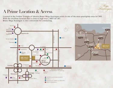 Branz Mega Kuningan berada di jantung CBD Jakarta Selatan, dikelilingi oleh: