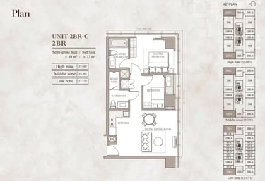 Ruang lebih dan privasi lebih dibanding tipe 1BR atau studio; cocok untuk pasangan, keluarga kecil, atau mereka yang butuh ruang kerja di rumah.