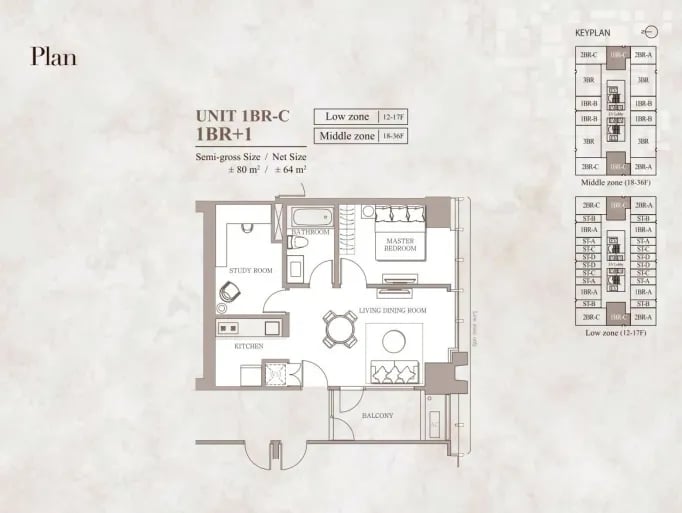 Tipe 1 Bedroom + 1 di Branz Mega Kuningan menggabungkan ruang tidur utama yang nyaman dan ruang tambahan fleksibel dalam satu kesatuan unit mewah di kawasan CBD Jakarta. Dengan luas ± 61 m² (Tipe B) hingga 80 m² (Tipe C), unit ini dirancang untuk mereka yang menginginkan ruang lebih dari sekadar tidur — ideal bagi keluarga kecil, profesional yang butuh ruang kerja, atau bagi yang sering menerima tamu.