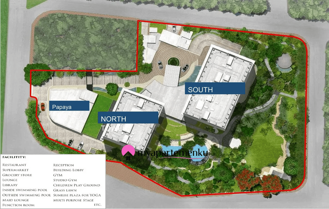 Restaurant (Kamakura Café) ; Supermarket (FoodMax); Day Care Kodomo-En), Library; Indoor & Outdoor Swimming Pool; Jacuzzi; Function Room ; Reception; Building Lobby; Studio Gym; Children Playground; Grass Lawn; Jogging Track, Dog Run, etc