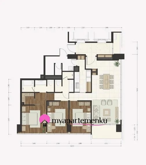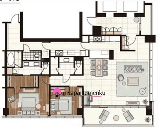Size:± 120-130 m² (termasuk fasilitas maid room / service area).