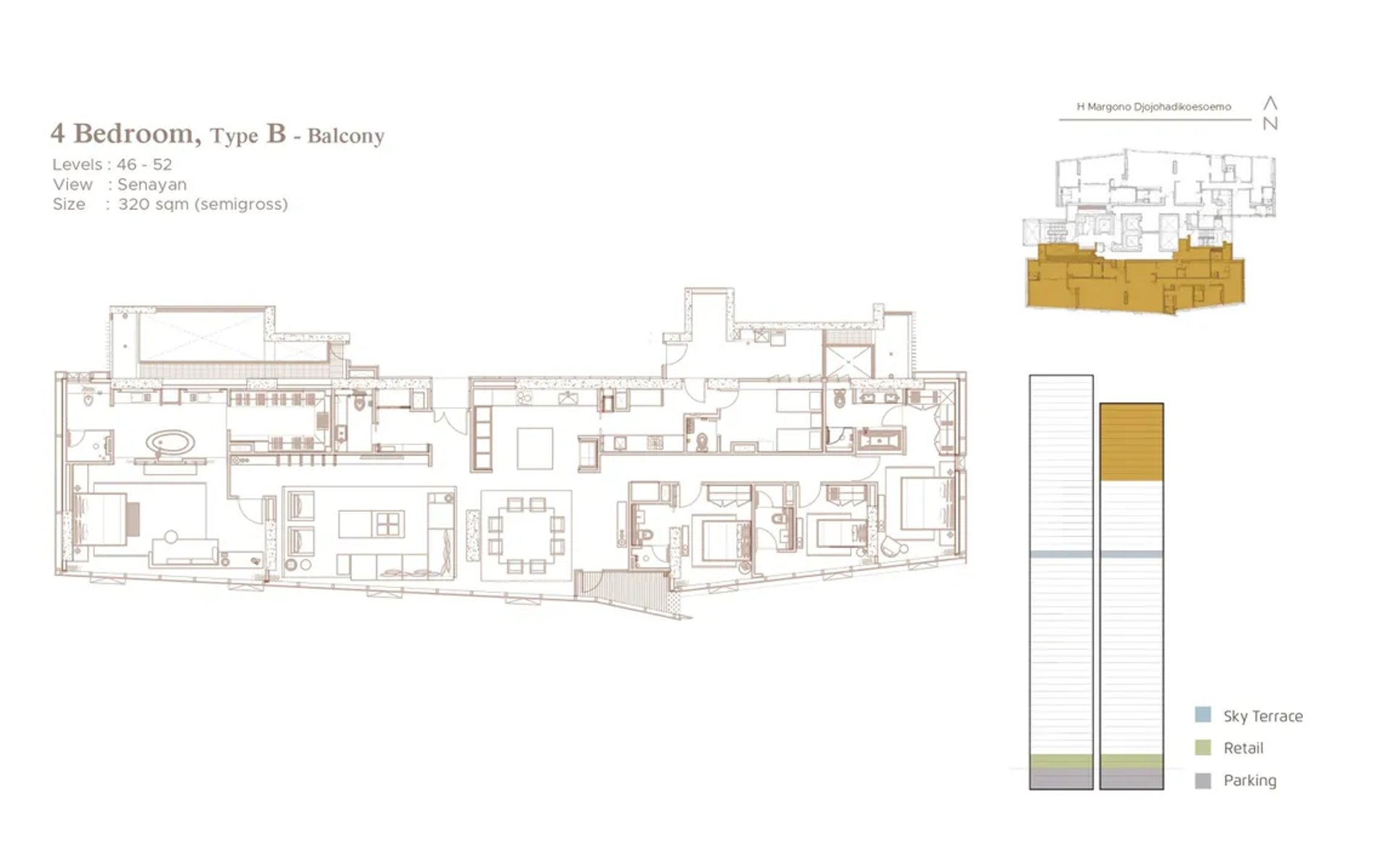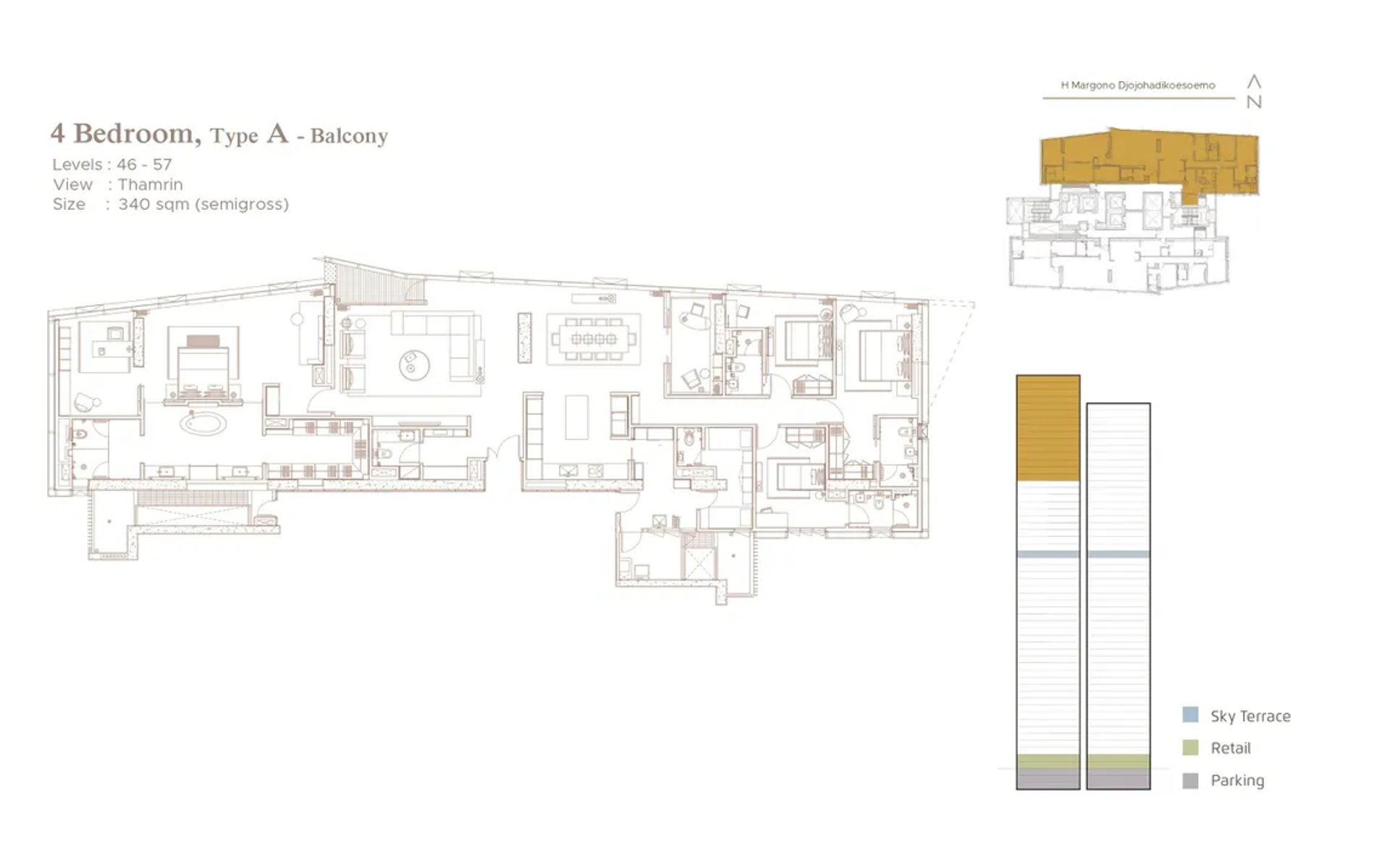 - Penthouse : hingga ± 500 m²