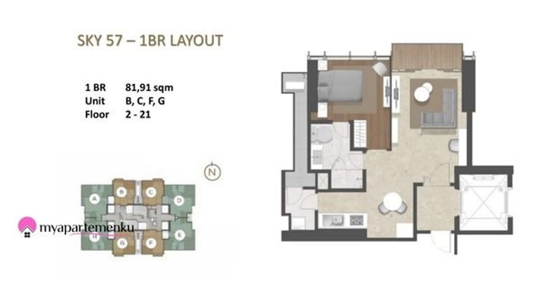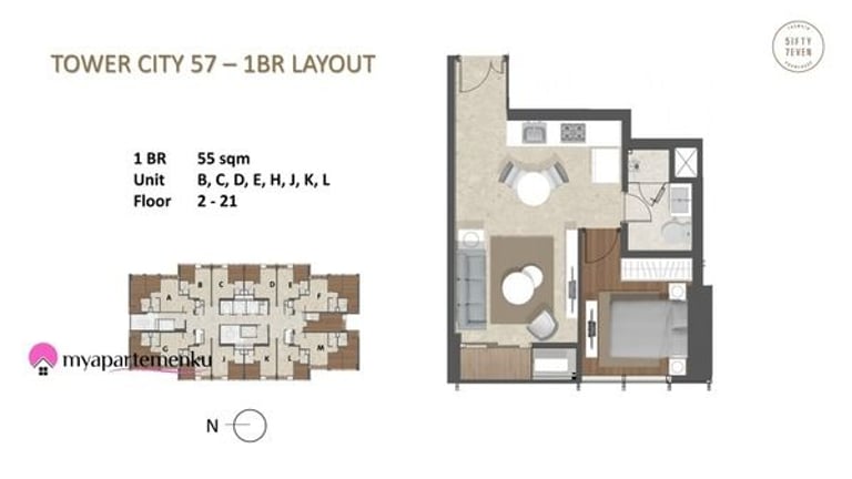Tower: CITY, Type: 1 Kamar, Size: 55 sqm, Floor: 18
