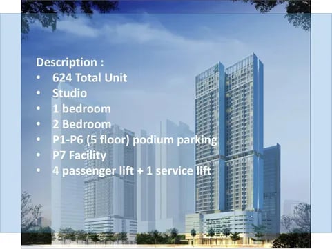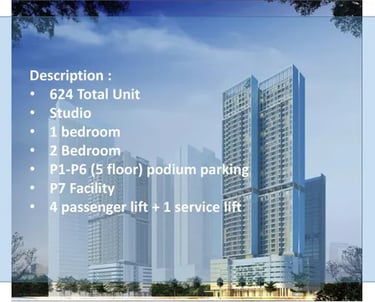 Total Lantai : 40 Lantai (1 Lantai Fasilitas & 5 Lantai Podium Parking & 1 Lantai Refugee Area)