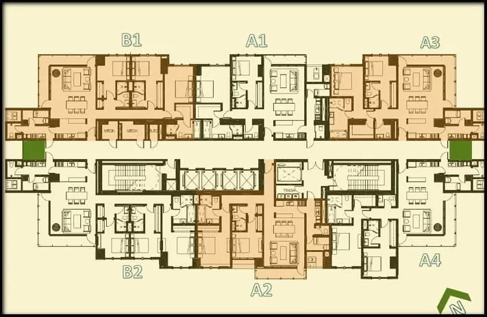Type 2 Bedrooms | 2 bathrooms | 1 maidroom | storage | service room | living room | dining room | wet and dry kitchen